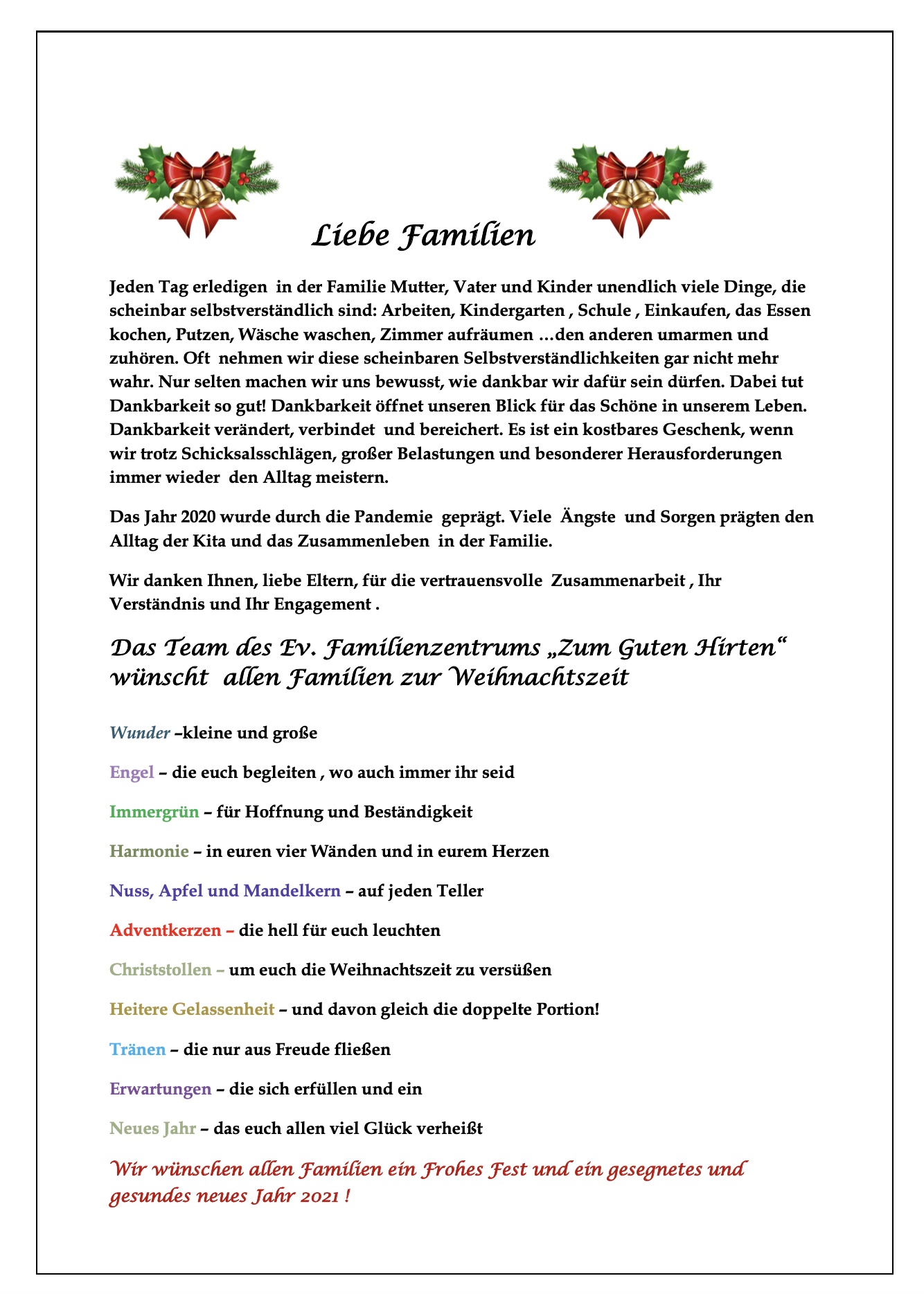 Weihnachtsbrief 2020